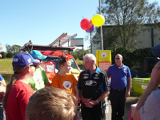 Treens parents came to see the noisy parade off lights , sirens, bubbles, smoke and noise down the main street-being a quiet town on a Sunday there were not many locals to see the parade.